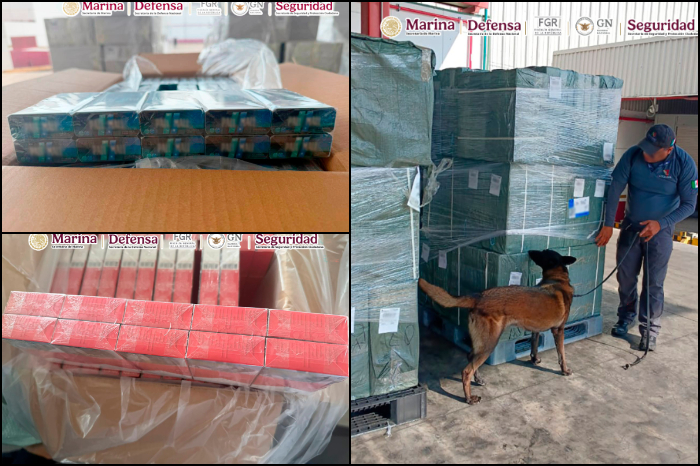 Morelia, Michoacán.- Derivado de trabajos de inteligencia, elementos de la Secretaría de Marina (Semar) y la Aduana del Aeropuerto Internacional de la Ciudad de México (AICM), aseguraron aproximadamente 19 mil 779 mil kilos de tabaco ilegal, equivalentes a 954,380 cajetillas de cigarrillos, con un valor comercial estimado en más de 70.7 millones de pesos, durante revisiones realizadas a seis cargamentos provenientes de Narita, Japón, entre el 22 de diciembre de 2025 y el 3 de enero de 2026. Esta acción evitó un impacto fiscal relevante al impedir la evasión del Impuesto Especial sobre Producción y Servicios (IEPS), estimada en 17.03 pesos por cajetilla, por lo que se calcula que se evitó una evasión de 16,224,460 pesos, cifra correspondiente a las más de 950,000 cajetillas incautadas. Con trabajos de campo y gabinete se identificó que esta red utilizaba declaraciones falsas y subvaluación, presentaban el tabaco como mercancía general o bolsas de compra, se apoyaba en logística formal y guías aéreas con datos alterados, mezclando la carga ilícita con envíos legítimos en vuelos comerciales, contaba con empresas importadoras que gestionaban el despacho aduanero en México y culminaba con la distribución clandestina en el mercado interno, con riesgos sanitarios y afectaciones a la recaudación y la propiedad intelectual. La detección fue resultado del trabajo coordinado entre Marina y Aduanas, así como del intercambio de información con autoridades japonesas. Participaron la Secretaría de Seguridad y Protección Ciudadana (SSPC), Fiscalía General de la República (FGR), Secretaría de la Defensa Nacional (Defensa) y Guardia Nacional (GN),
