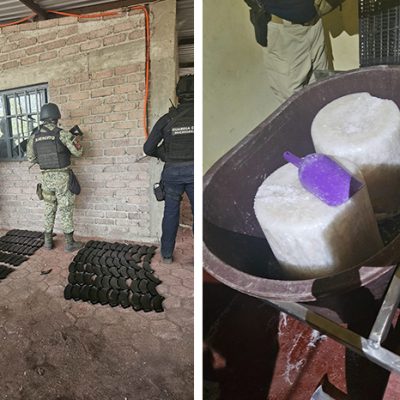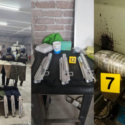 Redacción / La Voz de Michoacán La Huacana, Michoacán. Este miércoles la Fiscalía General del Estado realizó tres nuevos cateos en la población de Zicuirán, en el municipio de La Huacana, donde aseguró tres inmuebles: el primero era una fábrica de armas, en el segundo uno había más de 60 millones de pesos en droga y en el tercero se encontraron explosivos y aditamentos para ser lanzados desde dron, una granada, así como armas de fuego de uso exclusivo del Ejército y vehículos con reporte de robo. Durante la tercera acción realizada este día, en cumplimiento a una orden de cateo instruida por un Juez de Control, la FGE, con apoyo de las fuerzas estatales y federales, se constituyó en un inmueble de la calle Carmen Ahumada de la colonia El Mirador, para llevar a cabo diligencias relacionadas con la búsqueda de indicios para la investigación y persecución de delitos. En el sitio se lograron ubicar 52 artefactos explosivos, así como 40 espoletas de impacto para artefactos o explosivo improvisado lanzado desde un dron; una granada calibre 40, una seis armas de fuego de uso exclusivo del Ejército, una de ellas con aditamento lanzagranadas; cargadores y aproximadamente 2 mil 200 cartuchos útiles calibre 7.62x39, 7.62x51, .223 y calibre 12. De igual forma se aseguró un vehículo Jeep, tipo Grand Cherokee con reporte de robo y tres motocicletas con alteraciones en sus medios de identificación. Foto: FGE Los explosivos fueron asegurados por personal del Agrupamiento Especializado en Artefactos y Materiales Peligrosos, en tanto que las armas, cartuchos y vehículos, fueron resguardados por personal de la Fiscalía para continuar con la investigación. En todas las acciones, la Fiscalía fue apoyada por la Secretaría de la Defensa Nacional (Sedena), la Guardia Nacional (GC) y la Guardia Civil (GC). Decomisan 60 millones de pesos en drogas En el segundo cateo de este miércoles fue asegurado un inmueble adaptado como narcolaboratorio en el que se incautaron drogas, cargadores para fusil y uniformes con insignias militares. Durante esta acción, se aseguraron aproximadamente 300 kilos de metanfetamina y 4 kilos de cocaína, mismos que de acuerdo con reportes de inteligencia de haber llegado al mercado al narcomenudeo habrían dejado más de 60 millones de pesos para la delincuencia organizada. Hallan fábrica de armas, la segunda más grande del país En el primer cateo de este día fue asegurado y desmantelado un inmueble para la fabricación clandestina de armas, así como para la elaboración de uniformes "pirata" y ensamblado de partes de lanzagranadas. Personal de investigación, con apoyo de autoridades estatales y federales, se trasladó primeramente a una bodega ubicada en la colonia Bachilleres, para dar cumplimiento a un mandato judicial solicitado por el agente del Ministerio Público de la Fiscalía Regional y obsequiado por un Juez de Control. Durante la diligencia, la Policía de Investigación (PDI) aseguró artefactos explosivos, maquinaria para fabricación hechiza, aditamentos de armas de fuego (lanzagranadas y cuerpos de granadas), maquinaria utilizada para la elaboración de uniformes de las fuerzas armadas, telas y textiles. A estos golpes contundentes contra los criminales, se le suman los aseguramientos de días pasados, en los que fue desmantelada una "fabrica" de explosivos, otra para fabricar armas y una bodega, donde fueron incautados artefactos, material explosivos, maquinaria especializada, armas, droga, uniformes apócrifos y vehículos.