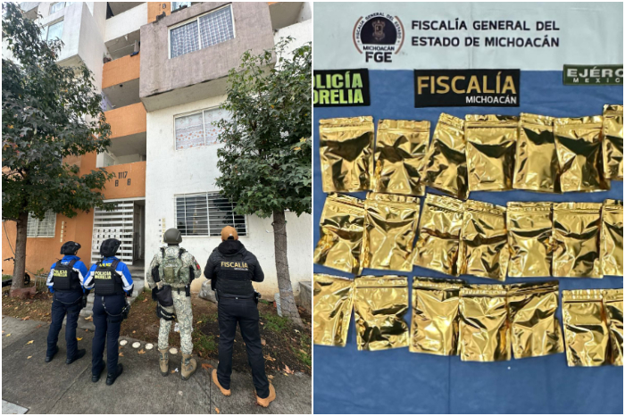 Morelia, Michoacán. La Fiscalía General del Estado de Michoacán (FGE), a través de la Fiscalía Especializada en Delitos Patrimoniales y Narcomenudeo, ejecutó un cateo en un inmueble ubicado en el fraccionamiento Villas del Pedregal, donde fueron aseguradas diversas dosis de narcóticos y se realizó la detención de una persona.