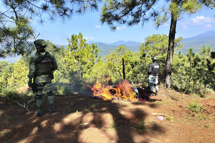Redacción / La Voz de Michoacán Michoacán. En el marco del Plan Nacional de Paz y Seguridad 2018-2024, en el estado de Michoacán, integrantes de la Guardia Nacional (GN), en coordinación con personal del Ejército Mexicano y con apoyo de la Guardia Civil estatal, desmantelaron dos presuntos campamentos clandestinos, donde localizaron cargadores y cartuchos útiles de diversos calibres; uno de ellos, calibre 50 mm para fusil Barret. En atención a una denuncia ciudadana que reportó la presencia de personas con pasamontañas en las inmediaciones del cerro Colorado, ubicado en la comunidad de Caltzontzin, municipio de Uruapan, integrantes de las tres instituciones ubicaron los campamentos, presuntamente utilizados por integrantes de la delincuencia organizada. Al arribar al lugar, los elementos visualizaron a lo lejos a varias personas armadas y con chalecos balísticos, quienes emprendieron la huida al notar la presencia de las autoridades. Foto: Cortesía. Por lo anterior, se desplegó un operativo de seguridad perimetral y se acordonó la zona para ubicar a los responsables, sin obtener resultados positivos. Al ampliar el reconocimiento en el lugar localizaron dos mochilas, que contenían tres cargadores y alrededor de 300 cartuchos útiles para armas de diferentes calibres, entre ellos, uno 50 mm para fusil de alto poder Barret; además de equipo táctico. En los aparentes campamentos se encontró ropa civil y diversos objetos que fueron destruidos con el método de incineración. El material bélico fue asegurado y puesto a disposición en la delegación de la Fiscalía General de la República (FGR) en Uruapan, Michoacán, para continuar las investigaciones correspondientes. La Guardia Nacional y el Ejército Mexicano refrendan su compromiso de velar y salvaguardar el bienestar de los ciudadanos, contribuyendo a garantizar la paz y seguridad de la población.