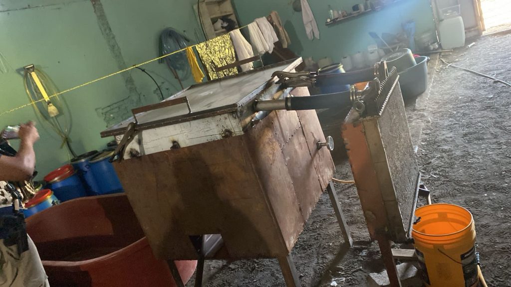 Redacción / La Voz de Michoacán La Huacana, Michoacán. En un segundo operativo realizada este martes en Zicuirán, municipio de La Huacana, fue asegurado un inmueble habilitado como laboratorio para elaboración de sustancias psicotrópicas, informó la Fiscalía General del Estado (FGE). En la diligencia fue realizada en una zona cerril de la localidad de Zicuirán, en cumplimiento a una orden de cateo se aseguraron percusores químicos e instrumentos rústicos para la elaboración del narcótico, así como una camioneta Toyota, tipo Outlander con reporte de robo. De igual forma, se destruyó una pasta blanca en su proceso al 80 por ciento para la fabricación de la sustancia conocida como cristal, en un peso aproximado de 200 kilos. Esta operación fue implementada luego de que agentes de la Policía de Investigación (PDI) obtuvieran datos de prueba de posibles hechos constitutivos de delito, mismas que permitieron obtener la respectiva orden de cateo. Luego de proceder a la inhabilitación de los implementos rústicos para la elaboración de dicha sustancia, el agente del Ministerio Público dispuso el aseguramiento de la propiedad a efecto de continuar con las investigaciones que permitan el pleno esclarecimiento de estos hechos. En las acciones participaron elementos de la Fiscalía, la Secretaría de la Defensa Nacional (Sedena), la Guardia Nacional (GN) y la Guardia Civil (GC). Antes, en esta misma población, fue asegurado un inmueble utilizado para la elaboración de blindaje artesanal, donde también se aseguraron dos vehículos, piezas automotrices, un arma de fuego de uso exclusivo y enervante. Lo anterior se derivó de trabajos de investigación que llevaron al hallazgo de un taller de hojalateria y pintura ubicado en la calle Carmen Ahumada de la colonia El Mirador, en la localidad de Zicuiran, de donde se obtuvieron datos de prueba de que ahí se realizaban posibles conductas ilícitas, por lo que el agente del Ministerio Público solicitó orden de cateo, misma que fue obsequiada. Por lo anterior, la FGE implementó un dispositivo y con apoyo de Sedena, GN y GC, se trasladó a la ubicación antes referida para llevar a cabo la ejecución del mandato judicial; ahí, ubicaron dos vehículos, piezas automotices y maquinaria de corte y soldadura de lámina, además de un arma de fuego de uso exclusivo y una bolsa que contenía enervante con características de marihuana. La propiedad, los vehículos y los objetos fueron asegurados, en tanto que las investigaciones continúan, a efecto de esclarecer estos hechos. En días recientes -como ya ha informado este medio-, en La Huacana también fue asegurado un inmueble con 117 artefactos, cargas explosivas, metrallas, botellas para elaboración de bombas molotov, más de 100 kilos de explosivos y 1 mil 680 percusores hechizo. Además material diverso para fabricar granadas de mortero y cargas de propulsión; así como 11 litros de ácido muriático y papel aluminio para fabricación de artefactos, entre otros objetos.