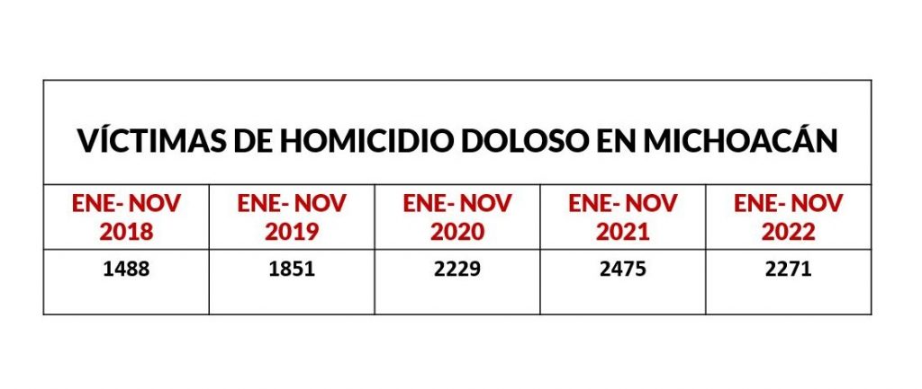 Pese a disminución de casos, 2022 fue el segundo año más violento en la historia reciente de Michoacán