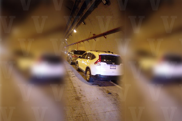 Salvador Rodríguez /La Voz de Michoacán Morelia, Michoacán. Un choque por alcance entre dos camionetas sucedido en el túnel del Ramal Camelinas en esta ciudad dejó únicamente daños materiales, de acuerdo con el reporte brindado por las autoridades policiacas. El suceso fue durante la noche de este viernes en el sitio antes mencionado, a donde se desplazaron unos paramédicos locales que al llegar y confirmar que no había lesionados se retiraron del sitio, no sin antes revisar a los ocupantes de las unidades automotrices involucradas. Los vehículos que protagonizaron la colisión fueron una camioneta de la marca Honda CRV, de color blanco, con placas de circulación PFL-037-Z y una Mercedes Benz ML, de color gris, con matrícula PGA-265-G. Los elementos de Tránsito del Estado realizaron los peritajes respectivos para determinar responsabilidades. Mandos policíacos exhortaron a la ciudadanía a manejar con precaución para evitar tragedias.