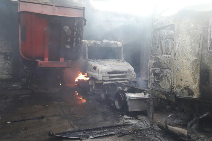 Apatzingán, Michoacán. Varias pipas de diesel se incendiaron en las instalaciones de una bodega de la empresa Aga, ubicada en la colonia Bellavista.
