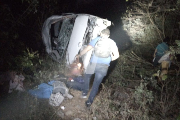 Algunos compañeros de los maestros mencionaron que al parecer un camión golpeo la camioneta, una tipo Urban de la marca Toyota de color blanco, lo que ocasionó que se proyectara a un barranco de aproximadamente 15 metros de profundidad.