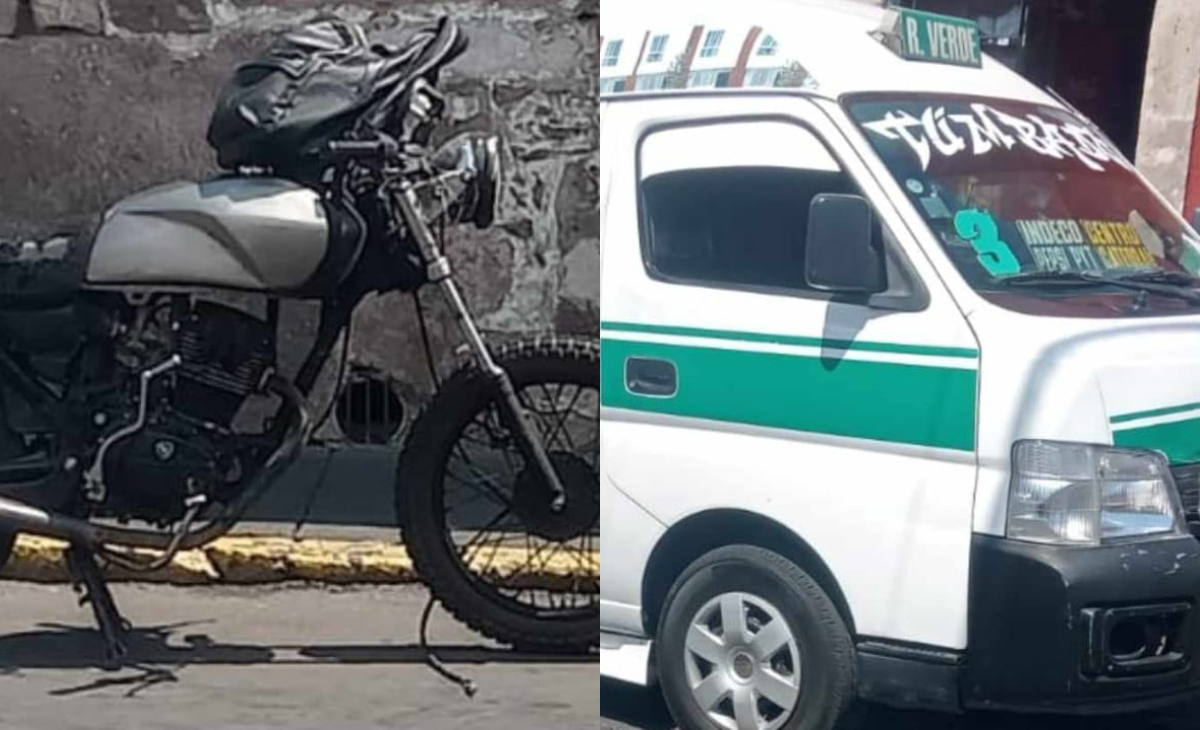 Redacción / La Voz de Michoacán Morelia, Michoacán. Una combi de la Ruta Verde 3 y una motocicleta participaron en un choque en la colonia Centro de la ciudad de Morelia. No hubo lesionados, trascendió en la labor periodística. El percance se registró la tarde de este jueves sobre la calle Cuautla esquina con Allende. Se apreció que el vehículo del transporte público involucrado tiene el número económico 72. Y el motociclo es uno de color gris con negro. El accidente fue reportado el número de emergencias 911, entonces acudieron unos elementos de Seguridad Vial de la Guardia Civil, quienes realizaron el peritaje correspondiente para deslindar responsabilidades.