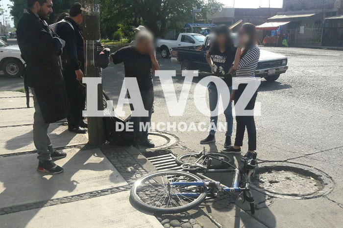 Alejandro Serrano/La Voz de Michoacán Zamora, Michoacán. Lesiones en diversas partes de su cuerpo, principalmente en el rostro, sufrió un ciclista al ser atropellado por una veloz camioneta, cuya conductora esperó la llegada de los elementos de Tránsito y Vialidad Municipal. Este accidente ocurrió al filo de las 14:15 horas de este viernes, en la esquina de las avenidas Virrey de Mendoza y Del Árbol, del Fraccionamiento Las Fuentes, de esta urbe, lugar donde resultó lesionado el señor Raúl E., V., de 65 años de edad, vecino del andador Caoba, del Infonavit Arboledas, Primera Sección. Al sitio llegaron los paramédicos de la Unidad de Rescate y Salvamento, quienes prestaron los servicios prehospitalarios al ciclista, quien señaló que estaba golpeado, pero que no quería ser trasladado a un hospital y sólo fue estabilizado por los socorristas. La camioneta que embistió al hoy lesionado es una Chrysler, tipo vagoneta, color gris, matrícula PFC-120-L, de Michoacán, cuya conductora se comprometió a pagar los daños a la bicicleta así como las curaciones al afectado, según señalaron las autoridades de Tránsito y Vialidad.