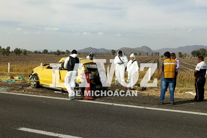 Alejandro Serrano/La Voz de Michoacán Álvaro Obregón, Michoacán. Dos mujeres fallecidas e igual número de lesionados, éstos últimos menores de edad, fue el resultado de la volcadura de un vehículo sobre la Autopista de Occidente, en la región de Álvaro Obregón. Contactos policiales y de rescate indicaron que el accidente se registró a la altura del kilómetro 219+500. Las personas que sufrieron la desgracia son integrantes de una familia del Estado de México, quienes se dirigían a su hogar, comentaron las autoridades. Los infortunados viajaban a bordo de un Volkswagen CrossFox, color amarillo, matrícula mexiquense 150-UC-H., el cual terminó muy dañado. En la cobertura de la noticia se supo que las finadas respondían a los nombres de Otilia E. y Abril I., de 60 y 20 años, respectivamente. En tanto que los sobrevivientes son los hermanos: Armado Emmanuel M. y Sofía Isabel M., de 10 y 06 años, quienes fueron auxiliaron por unos paramédicos y canalizados en helicóptero hasta un hospital privado en la capital michoacana. Oficiales de Tránsito de Zinapécuaro acudieron al apoyo, así como patrulleros federales de la División de Seguridad Regional, mismos que acordonaron la escena, la cual posteriormente fue procesada por elementos de Servicios Periciales. Los agentes ministeriales de la Unidad de Atención Temprana, dependientes de la Procuraduría General de Justicia (PGJ), realizaron las correspondientes investigaciones y los cadáveres fueron finalmente enviados al Semefo, localizado en la ciudad de Morelia.