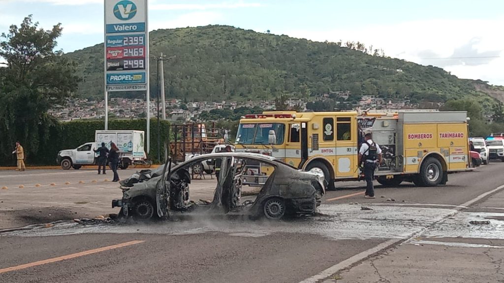 Redacción / La Voz de Michoacán Tarímbaro, Michoacán. Sujetos desconocidos y encapuchados le prendieron fuego a dos vehículos, uno de los cuales terminó totalmente calcinado y el restante de manera parcial, hechos que se registraron sobre la carretera Tarímbaro-Álvaro Obregón, informaron autoridades policiales. El primer vehículo fue incendiado de manera intencional cerca del fraccionamiento El Encanto, en los límites con el municipio de Álvaro Obregón, mientras que el segundo vehículo solo fue parcialmente incendiado en la misma carretera, pero a la altura de Uruétaro. En el primer hecho, de acuerdo con los primeros reportes, habría sido un hombre encapuchado el que quemó la unidad y la atravesó sobre los dos carriles. El automotor siniestrado es un Aveo blanco, el cual fue consumido por las llamas en la carretera que lleva al Aeropuerto. Al lugar acudieron policías y personal de bomberos de Protección Civil de Tarímbaro, quienes controlaron el fuego. Segundo auto fue parcialmente quemado Después del primer hecho, sujetos intentaron incendiar un segundo automóvil sobre la misma carretera Tarímbaro-Zinapécuaro, pero en inmediaciones de la población de Uruétaro. Este auto es un Chevrolet blanco, el cual tiene flamazos y daños parciales luego de que trataron de quemarlo. Hasta el momento se desconoce el motivo que tuvieron los individuos para cometer los referidos actos delictivos. Las situaciones fueron reportadas por varias personas al número de emergencias 911. Al enterarse de estos casos, patrulleros de distintas corporaciones acudieron a las escenas para acordonarlas y otorgar seguridad, luego se dio parte a la Fiscalía General del Estado (FGE), a efecto de emprender las investigaciones respectivas de ambos asuntos. Delincuentes tratan de quemar otro vehículo en la carretera Tarímbaro-Zinapécuaro, a la altura de Uruétaro➡️ https://t.co/KYA9hi0jrO pic.twitter.com/EtLMwYNrOw— La Voz de Michoacán (@vozmichoacan) September 12, 2024