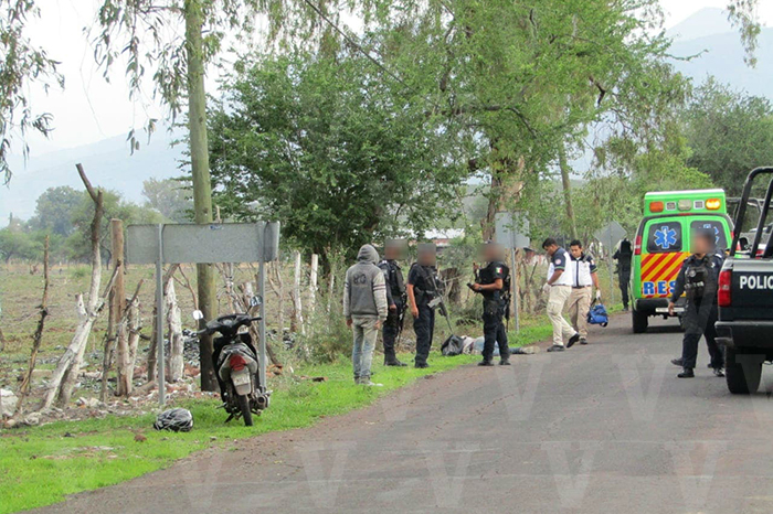 Alejandro Serrano/La Voz de Michoacán Zamora, Micoacán. Unos sujetos desconocidos atacaron a balazos a dos albañiles que viajaban en una motocicleta, de los cuales uno murió y otro resultó ileso, en el municipio de Zamora. De acuerdo con datos obtenidos por este medio la víctima mortal del incidente está identificada como Ángel VP de 17 años de edad, quien al momento del crimen iba en compañía de otro muchacho del que no se dieron los generales, con rumbo a su casa sobre el Camino que conduce de la Tenencia de Ario de Rayón hacia la comunidad de Villafuerte, justo a unos metros de la Secundaria local. En determinado momento dos desconocidos interceptaron a los muchachos y les dispararon en repetidas ocasiones para después huir a pie sin que se sepa hasta el momento su paradero. Posteriormente se notificó del hecho al Servicio de Emergencias, tras lo que acudieron técnicos en urgencias médicas de Rescate y Salvamento los cuales confirmaron el deceso de Ángel V., P., en tanto policías resguardaron la zona donde personal de la Fiscalía General del Estado se encargó del peritaje y el levantamiento del cuerpo para su traslado al Servicio Médico Forense con el fin de realizar la cirugía post mortem que exige la ley.