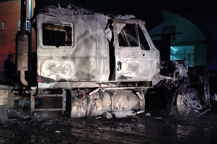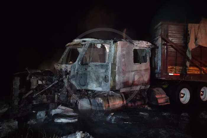 Indaparapeo, Michoacán. Sujetos armados interceptaron un tractocamión, bajaron al conductor e incendiaron la unidad a la orilla de la carretera Morelia-Maravatío, la noche de este lunes.