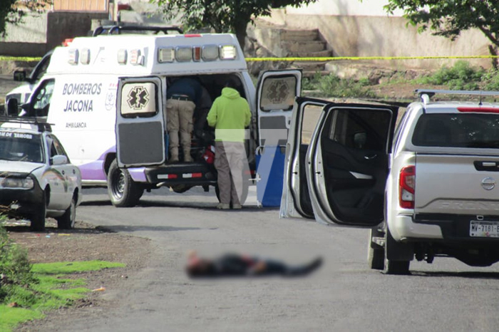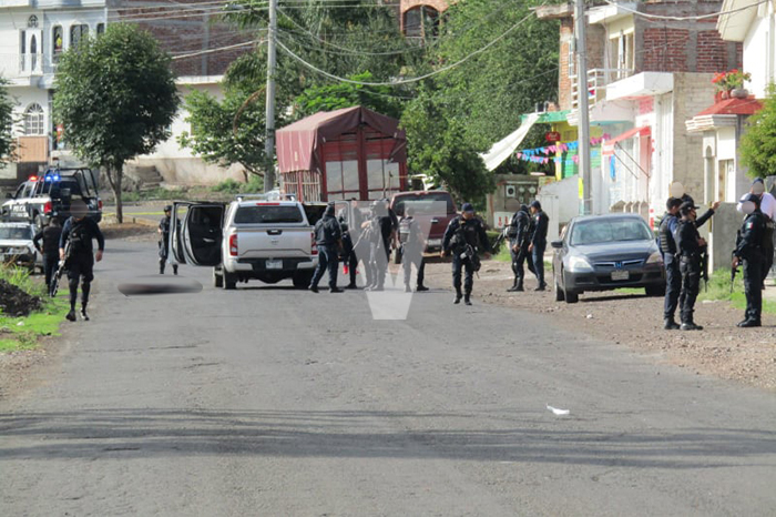 Redacción / La Voz de Michoacán Jacona, Michoacán. Presuntos integrantes de un grupo delincuencial se enfrentaron a balazos con elementos de la Dirección de Seguridad Publica de Jacona luego de ser descubiertos cuando abandonaban un cadáver en las calles de la colonia Nueva España, tras esto uno de los pistoleros fue abatido, mientras una mujer ajena a los hechos resultó lesionada por una “bala perdida”. Al respecto se supo que primeramente uniformados de la Policía Municipal y Policía Michoacán circulaban por la calle Isabel La Católica entre las calles Javier Mina y Hernán Cortes cuando observaron a los delincuentes abandonando el cadáver baleado de un hombre, que está sin identificar. De inmediato los sujetos al notar la presencia de los uniformados empezaron agredirlos a tiros, dándose a la fuga a bordo de una camioneta Nissan tipo Frontier, color plata, con placas MV-7181-B de Michoacán, por lo que se inició una persecución que concluyó hasta la calle Líderes Campesinos de la comunidad de Tamandaro, donde los delincuentes bajaron de la unidad intercambiando disparos por varios minutos. Ahí cayó un sin vida uno de los agresores, mientras que sus cómplices se dieron a la fuga con rumbo al Cerro del Curutarán, por lo que ya con apoyo de Policías de Zamora se implementó un operativo en busca de los mismos, sin obtener resultados positivos. Cabe señalar que en medio de la refriega quedo un camión de pasajero de la Ruta Naranja, en el cual viajaba la señora Ma. Del Carmen A., M., de 56 años de edad, la cual fue alcanzada por una bala, la cual impacto en la pierna derecha por lo que los paramédicos de Protección Civil Municipal la trasladaron a un nosocomio para su atención médica. La zona fue resguardada por los uniformados y personal de la Fiscalía General del Estado se encargó de realizar las actuaciones de rigor para integrar la carpeta de investigación correspondiente, así mismo llevaron los cadáveres a la morgue del Semefo local para los estudios de ley.