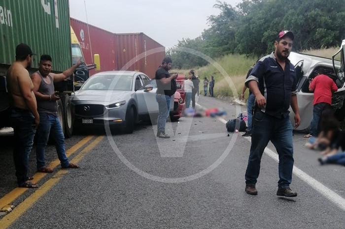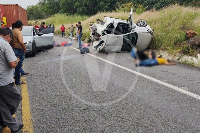 Redacción / La Voz de Michoacán Taretan, Michoacán. Tres tráileres doble remolque y 6 vehículos particulares se vieron involucrados en un choque múltiple en la autopista Siglo XXI, cerca de la caseta de peaje de Taretan, donde de acuerdo con la Secretaría de Seguridad Pública, 6 personas murieron y 10 están lesionadas; lamentablemente entre las víctimas hay varios menores de edad. El accidente ocurrió la tarde de este miércoles a la altura del kilómetro 108+000, donde la circulación fue cerrada en tanto se realizaban las tareas de rescate y la Fiscalía General del Estado efectuó las actuaciones correspondientes. Tras la colisión varias de las unidades quedaron destrozadas, bloqueando por completo la carretera. Situación que movilizó a paramédicos y bomberos de la región para otorgar ayuda. Hasta el momento y de forma preliminar las corporaciones de auxilio indicaron que el percance ha dejado 7 personas muertas y al menos 10 lesionadas, entre ellas varios menores de edad. Al lugar acudieron cinco ambulancias, un camión bomberos, una unidad de ataque rápido, elementos de la Guardia Nacional, de la Guardia Civil y de la Policía Municipal de Taretan. Los cuerpos de emergencia y seguridad tanto del Gobierno del Estado, Guardia Nacional, y corporaciones municipales acudieron a brindar auxilio a los lesionados, mismos que fueron trasladados a nosocomios de Uruapan para su atención inmediata.