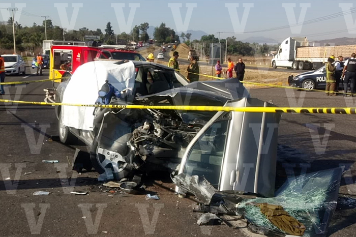 Redacción / La Voz de Michoacán Morelia, Michoacán. El choque de un auto contra un tráiler dejó como saldo un muerto y tres lesionados, uno de ellos atrapado en el interior del vehículo particular, accidente sucedido la mañana de este lunes en la carretera Morelia-Pátzcuaro. El percance fue a la altura de la población de Santiago Undameo, perteneciente a este municipio de Morelia. La situación fue reportada por varios automovilistas al número de emergencias 911, rápidamente los elementos de Protección Civil Estatal se dirigieron a la escena y auxiliaron a los sobrevivientes. Asimismo, unos paramédicos del Centro Regulador de Urgencias Médicas canalizaron a los heridos a unos hospitales. Los lesionados son: Iván R., Yazmín y Alejandra, de 21, 20 y 22 años de edad, respectivamente, ellos viajaban en un coche Nissan Sentra, de color plata, con placa 590UUJ. El tractocamión involucrado en el incidente es un Freightliner, de color blanco, el cual transportaba cemento. Los agentes de la Policía Michoacán y de la Policía Municipal abanderaron la escena, mientras que el personal de la Fiscalía General de Justicia del Estado se encargó de las correspondientes averiguaciones. El cuerpo sin vida fue trasladado a la morgue de la región, está en calidad de desconocido, mencionaron voces allegadas al asunto. Las víctimas son estudiantes de Enfermería, según mencionaron las autoridades policiacas.