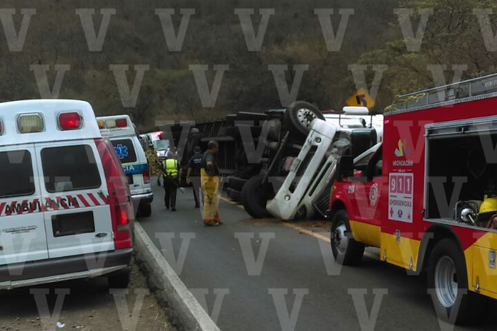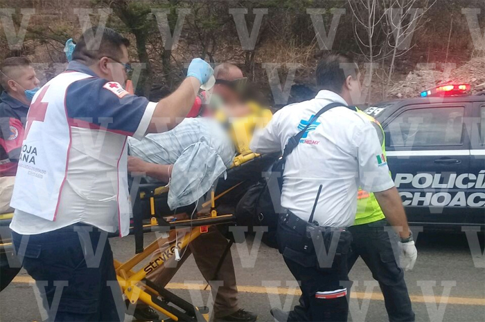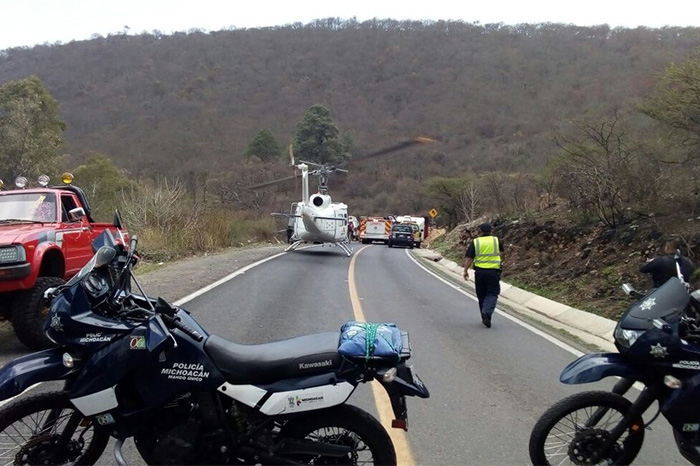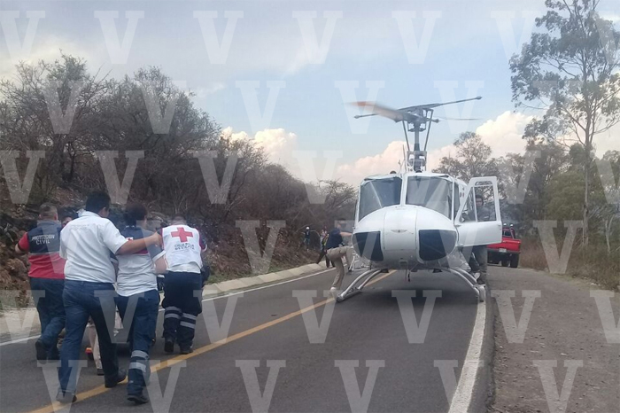 Redacción / La Voz de Michoacán Morelia, Michoacán. Un tráiler volcó y aplastó a una camioneta en la que iba una familia, esto en la carretera Morelia-Mil Cumbres, hecho que dejó como saldo seis lesionados en el vehículo particular, dos de ellos de gravedad que fueron canalizados en un helicóptero a recibir atención médica, según la información brindada por fuentes policiacas. En este tenor se supo que el suceso fue la tarde de este domingo, a la altura del kilómetro 224+500 de la citada vialidad, en las inmediaciones de la comunidad de Zurumbeneo en esta demarcación de Charo. Al respecto contactos oficiales detallaron que entre los heridos están cuatro adultos y dos menores de edad, de quienes se desconocen sus generales. De los adultos un hombre y una mujer están malheridos, la dama sufrió la amputación de su brazo izquierdo. Ellos quedaron prensados entre los hierros retorcidos del automotor en el que viajaban y fueron rescatados con la ayuda de equipo hidráulico. Estas dos personas que están graves fueron subidas a un helicóptero del gobierno del estado para ser llevadas a un nosocomio de la ciudad de Morelia. Los cuatro lesionados restantes fueron trasladados por tierra a diferentes hospitales. Las víctimas iban en una camioneta de la marca Ford Explorer con placas de circulación PFK-750-V, misma que fue aplastada por un tráiler que transportaba un cargamento de aserrín, unidad con matrícula MU-5001-V, cuyo chofer se dio a la fuga. La emergencia fue atendida por los Bomberos Morelia, Protección Civil Estatal, Protección Civil de Charo, los paramédicos del Centro Regulador de Urgencias Médicas (CRUM) y de la Cruz Roja (CR), así como por Tránsito del Estado y la Policía Michoacán.