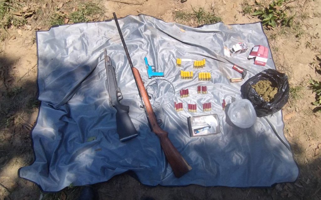 Hidalgo, Michoacán.- La presencia policial de la Secretaría de Seguridad Pública (SSP) en el municipio de Hidalgo, para garantizar la seguridad de sus habitantes, permitió la localización de tres armas de fuego, cartuchos útiles y diversas drogas. Mientras los guardias civiles mantenían patrullajes de vigilancia, en conjunto con el Ejército Mexicano (Sedena) y Guardia Nacional (GN), sobre un camino de terracería de la tenencia de San Matías el Grande, visualizaron varios objetos regados sobre el piso, por lo que procedieron a una inspección. Tras las actuaciones, los encargados de la seguridad localizaron una escopeta y un arma corta de fabricación artesanal así como un arma larga, junto a 44 municiones. Asimismo, aseguraron aproximadamente 130 gramos de la droga conocida como metanfetamina y alrededor 530g de marihuana. Lo anterior fue puesto a disposición de la autoridad judicial correspondiente, quien continuará con las indagatorias de Ley. En tanto, los agentes continúan con patrullajes en la zona y cercanías, a fin de dar con el paradero de los presuntos implicados.