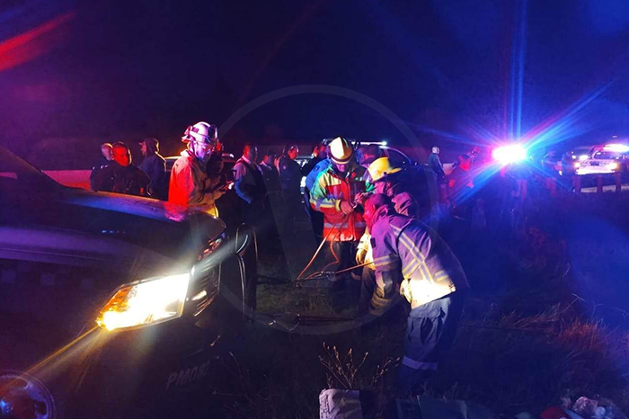 En la huida el vehículo se descontroló, salió de la carpeta asfáltica y se precipitó a un barranco de aproximadamente 20 metros de profundidad, accidente que tuvo lugar en las cercanías del fraccionamiento Arko San Pedro.