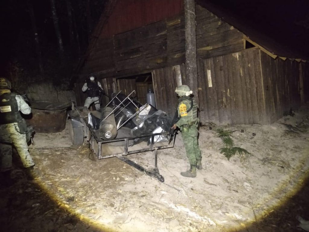 Redacción / La Voz de Michoacán Morelia, Michoacán. Elementos de la Secretaría de la Defensa Nacional aseguraron una cabaña que se empleaba como laboratorio clandestino para elaboración de droga sintética. Los hechos se registraron cuando personal militar, perteneciente al 12/o. Batallón de Infantería, en coordinación con la Guardia Nacional, realizaban reconocimientos terrestres en las inmediaciones del poblado de Paramo, municipio de Acuitzio, y en donde localizaron una cabaña de 8x15 Mts., sitio empleado como laboratorio clandestino para la elaboración de droga sintética. ¿QUÉ SE ASEGURÓ? 3 Reactores para síntesis orgánica Condensador 1,810 Lts. Sustancias químicas desconocidas. 48 tambos de diferentes capacidades. 230 Kgs. Sustancias químicas desconocidas en 10 costales 2 Tanques con gas L.P. Una camioneta RAM 3500 con reporte de robo. Una motocicleta.Un remolque sin reporte de robo. El personal militar se encuentra proporcionando seguridad periférica en el lugar del evento, en tanto lo asegurado se pone a disposición de la autoridad competente para llevar a cabo las diligencias periciales correspondientes. Cabe destacar que estas acciones son parte de la estrategia que arrancó a partir del 6 de marzo en el estado de Michoacán, donde 980 elementos se desplegaron para reforzar los municipios con más índices delictivos, de conformidad con el “Plan Nacional de Paz y Seguridad 2018-2024”. Mediante estas acciones la Secretaría de la Defensa Nacional coadyuva a la seguridad del país y refrenda su compromiso de servir al pueblo de México, contribuyendo a fortalecer el clima de paz, orden y seguridad en beneficio de la sociedad mexicana.