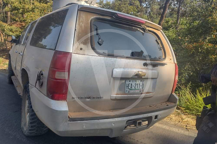 Por lo anterior, a la zona se movilizaron elementos de la Policía Michoacán, Policía Municipal, Ejército Mexicano y de la Fiscalía General del Estado, cuyos elementos al circular sobre la carretera libre a Lombardía ubicaron una camioneta blindada, tipo Suburban.