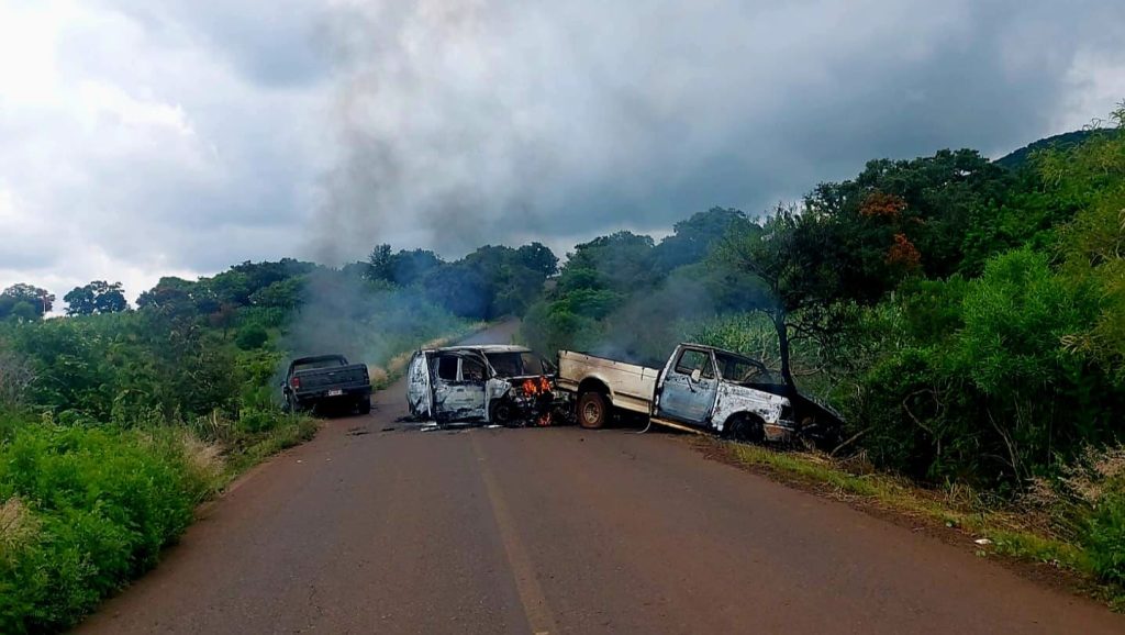 Redacción / La Voz de Michoacán Tangancícuaro, Michoacán. Un campamento usado por una célula delincuencial, dos Kuarichas (Guardia Comuna), así como 4 vehículos quemados, fue el saldo un enfrentamiento entre las autoridades y delincuentes en los límites de Tangancícuaro y Los Reyes. Primeramente, las alertas se encendieron al ser reportada una agresión armada por parte de un grupo armado en contra de personal de la Policía Comunal en la zona del cerro de Patamban, cerca de la comunidad de Guarachanillo, lo que movilizó a oficiales de los tres niveles de gobierno. A la zona se trasladaron en apoyo patrulleros de la Guardia Civil, Policía Municipal, Ejército Mexicano y de la Fiscalía General del Estado, mismos que en el trayecto hallaron ardiendo en llamas un tractor en las inmediaciones de la desviación a la población de Gómez Farías. Además, los delincuentes atravesaron tres camionetas y las incendiaron sobre la carretera a Patamban, en ambos sitios las fuerzas del orden retiraron las unidades siniestradas y reestablecieron el tránsito. Mientras que a consecuencia del tiroteo resultaron heridos los Policías Comunales Cristóbal S., y Abelardo F., mismos que fueron auxiliados por paramédicos y trasladados a recibir atención médica, siendo reportado su estado de salud como estable. Trascendió que las Kuarichas de J. Jesús Díaz Tsirio, municipio de Los Reyes y Patamban perteneciente a Tangancícuaro, ante la movilización de grupos de la delincuencia organizada, decidieron realizar recorridos en la zona cerril, logrando ubicar a una de las células lo que derivó en el citado enfrentamiento armado en las cercanias de Guarachanillo. Luego del tiroteo los criminales huyeron hacia la serranía, sin embargo, durante el despliegue operativo se localizó e inhabilitó un campamento improvisado, donde al escapar los delincuentes abandonaron diversas prendas de vestir, objetos para cocinar, equipo táctico, mochilas y varias cobijas. Por lo anterior la seguridad fue reforzada por Fuerzas Federales y Estatales, con la finalidad de dar acompañamiento a las autoridades comunales y en busca de detener a los agresores.