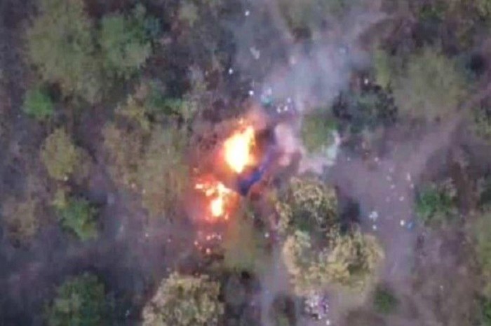 En el video grabado desde los drones se ve cómo caen varios explosivos tipo C4 en supuestos campamentos de habitantes de El Bejuco y La Romera.