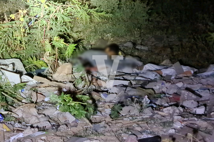 El finado fue identificado como Jesús L.R., alias El Chino, de 28 años de edad, con domicilio en La Mina; su cadáver quedó tirado entre escombros y la maleza