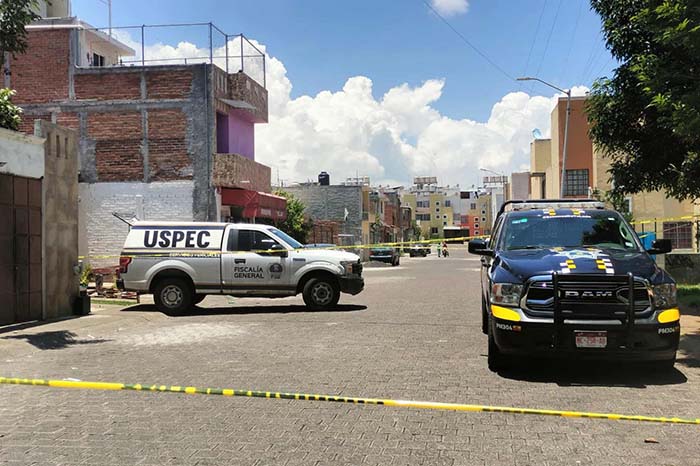 Redacción / La Voz de Michoacán Morelia, Michoacán. Un hombre fue ultimado de un balazo en la espalda, esto en la puerta de un domicilio del fraccionamiento Villas del Pedregal, ubicado en la zona poniente de Morelia, informaron autoridades policiales. El móvil del homicidio desconocido, pero extraoficialmente se supo que unos sujetos armados arribaron a la citada dirección y después de intercambiar algunas palabras con el ahora ofendido, lo sometieron, le dispararon y escaparon en un vehículo. El hecho sucedió en un inmueble del Circuito I, casi frente a calle Novena Cerrada I, a una cuadra de avenida Metales. Unos vecinos reportaron la situación al número de emergencias 911, consecutivamente se presentaron los patrulleros locales, quienes hallaron al comentado sujeto tirado y muerto en la entrada de la mencionada casa. Según las fuentes, al interfecto no está identificado, tenía entre 25 y 35 años de edad, era delgado, moreno claro y vestía pantalón de mezclilla azul, así como una camiseta negra sin mangas, además como seña particular tiene tatuado un fusil (una AK-47) en el antebrazo izquierdo. Los polimunicipales acordonaron el área y pidieron la intervención de la Fiscalía General del Estado (FGE), cuyos especialistas de la Unidad de Servicios Periciales y Escena del Crimen (USPEC) se encargaron de las primeras investigaciones y trasladaron el cadáver a la morgue para la práctica de la necropsia de ley.