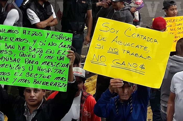 Cortadores de aguacate se manifiestan en Uruapan; exigen trabajo