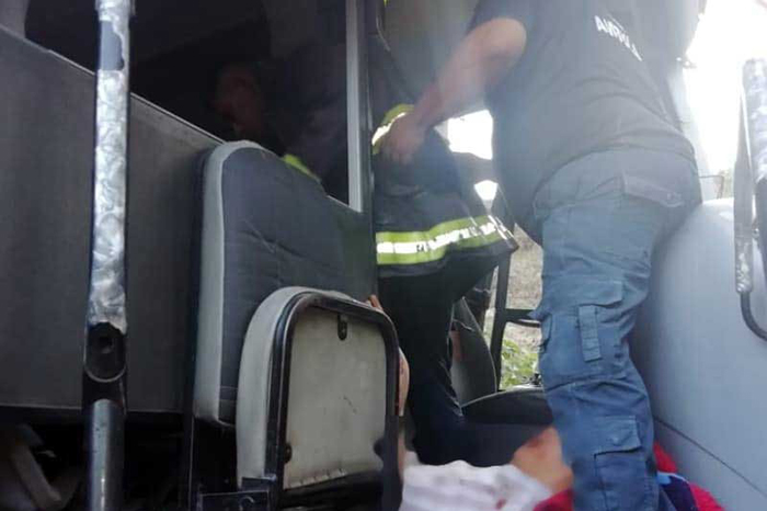 Explota granada de humo en autobús de pasajeros en Uruapan