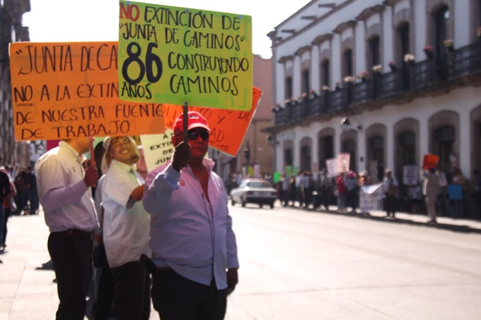 Manifestación en la Avenida Madero, ahora trabajadores de Junta de Caminos