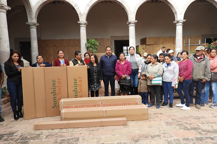 Alcalde de Cuitzeo y el cabildo hacen entrega calentadores solares
