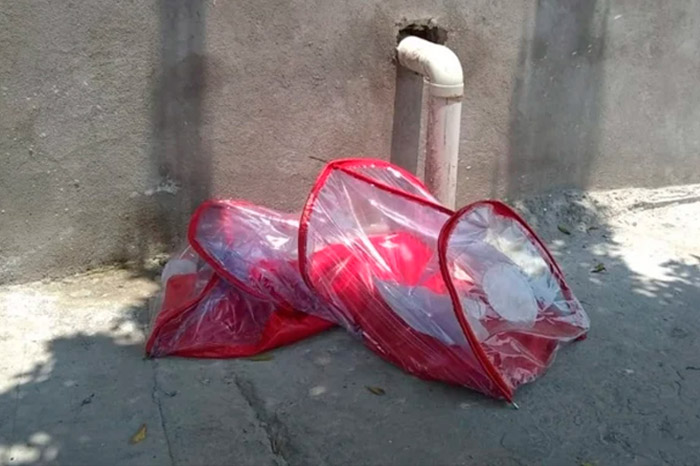 Abandonan en la vía pública una cápsula de bioseguridad para pacientes COVID-19