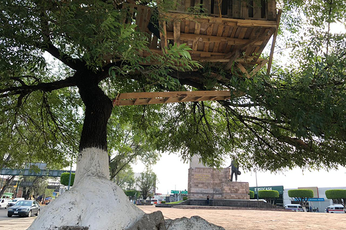 Morelia | Galería | Alguien construyó una casa del árbol en la plancha del Obelisco a Lázaro Cárdenas Leer más »