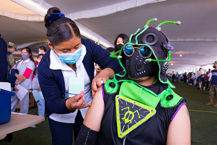 México | GALERÍA | Desde Pikachu, Winnie Pooh, unicornios, hasta superhéroes, acuden a vacunarse Leer más »