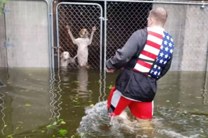 Heroico rescate; salvan a “peludos” de morir ahogados tras el paso de Florence