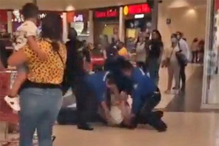 VIDEO | Entre golpes y jalones de pelo, pelean por una mesa para comer en plaza comercial