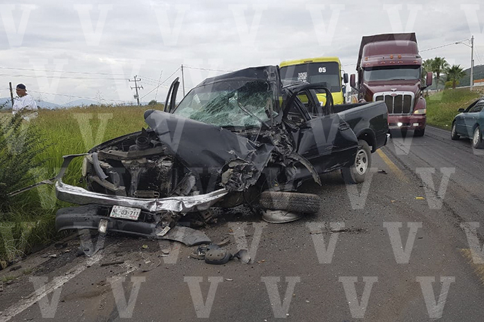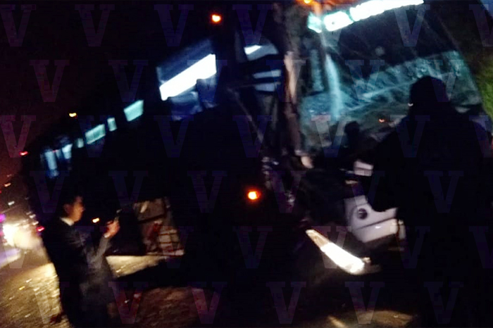 Torton vuelca e impacta a un autobús de pasajeros