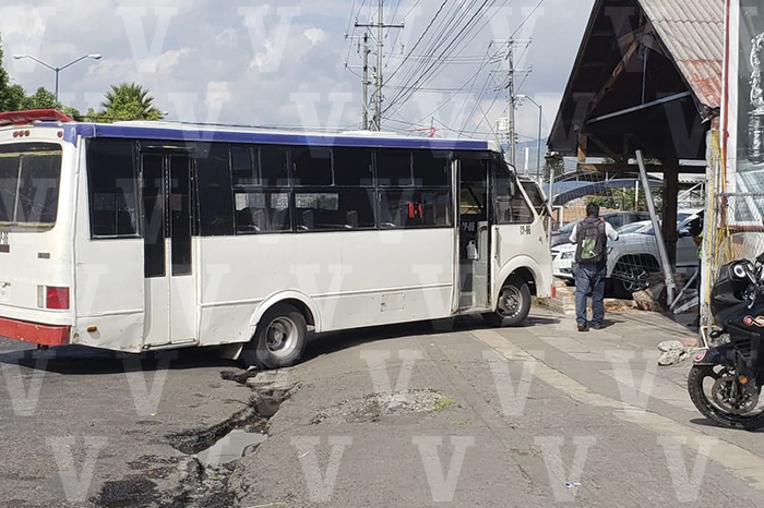 Camión Ruta Roja 1 choca contra negocio de venta de autos usados