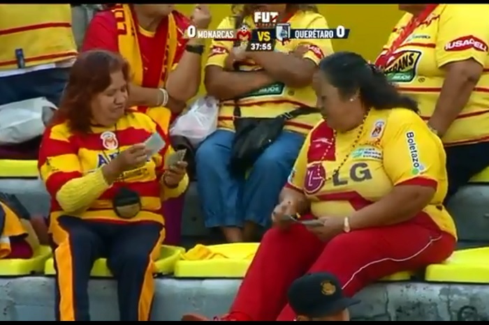 Mujeres se ponen a jugar cartas en pleno Monarcas vs Querétaro