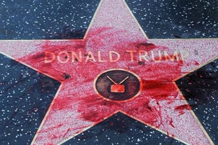 Pintan de rojo la estrella de Donald Trump en Hollywood