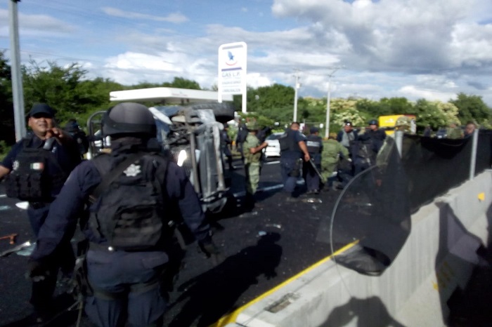 Varios policías quedan malheridos en aparatosa volcadura