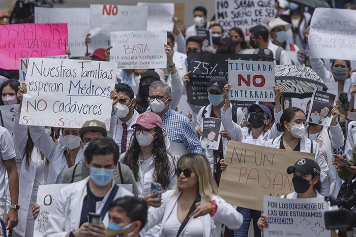 Médicos pasantes protestan afuera de Palacio donde vive AMLO, tras asesinatos dentro del gremio Leer más »