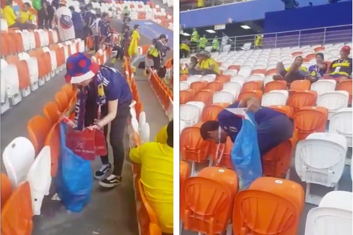 Después de la victoria, la afición de Senegal recoge la basura del estadio