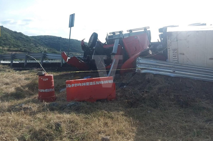 Seguridad | Tráiler se queda sin frenos y vuelca en rampa de frenado en la autopista Siglo XXI Leer más »