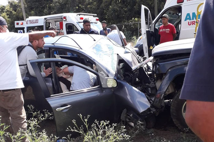 Seguridad | Encontronazo de frente entre dos autos deja como saldo cinco personas lesionadas Leer más »