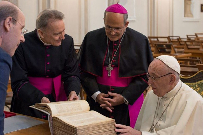 Recorre el Papa por primera vez la Biblioteca Apostólica Vaticana