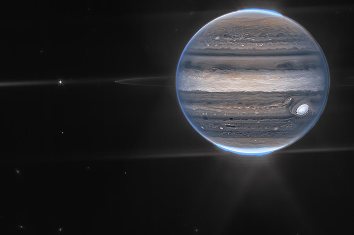 EFE / La Voz de Michoacán Washington. El Telescopio Espacial James Webb (JWST) ofreció dos nuevas imágenes sorprendentemente precisas de Júpiter, que muestran sus tormentas gigantes y vientos extremos y ofrecen a los científicos pistas adicionales sobre la vida interna de ese planeta. La agencia espacial estadounidense (NASA) celebró este lunes la calidad de los detalles, que según Imke de Pater, profesora emérita de la Universidad de California y codirectora de las observaciones, no se esperaba que fueran "tan buenos". Las fotografías difundidas permiten ver que las auroras se extienden a grandes altitudes sobre los polos norte y sur de Júpiter. Estas imágenes proceden de la cámara de infrarrojo cercano (NIRcam), que tiene tres filtros infrarrojos. Como la luz infrarroja es invisible para el ojo humano, esa luz ha sido mapeada al espectro visible. Las longitudes de onda más largas suelen aparecer más rojas y las más cortas más azules. En esas instantáneas se ve con claridad la "Gran Mancha Roja", una tormenta de arena que según la NASA es tan grande "que podría tragarse la Tierra", y que en esta ocasión aparece blanca porque refleja mucha luz solar. Foto: EFE. Heidi Hammel, científica del Webb, apunta en el comunicado que el brillo es una señal de gran altitud, por lo que esa gran mancha "tiene neblinas de gran altitud". En las imágenes también se pueden ver los anillos de Júpiter, "un millón de veces más tenues que el planeta", según la nota, y dos lunas diminutas llamadas Amaltea y Adrastea. Los investigadores ya empezaron a analizar los datos recibidos, que no llegan a la Tierra empaquetada de forma ordenada, sino que hay que traducirlos en imágenes. Procesó estas dos últimas Judy Schmidt, que en la que se ven los pequeños satélites del planeta colaboró con Ricardo Hueso, cuya investigación en la Universidad del País Vasco aborda el estudio de las atmósferas planetarias. El Telescopio Espacial James Webb es una misión conjunta de la NASA con la agencia europea (ESA) y la canadiense (CSA) y fue lanzado en diciembre del año pasado. Es el mayor que se ha enviado al espacio, ofrece una vista inédita del universo a longitudes de onda del infrarrojo cercano y el infrarrojo medio y permitirá estudiar una gran variedad de objetos celestes, desde galaxias vecinas hasta los confines del universo más distante.