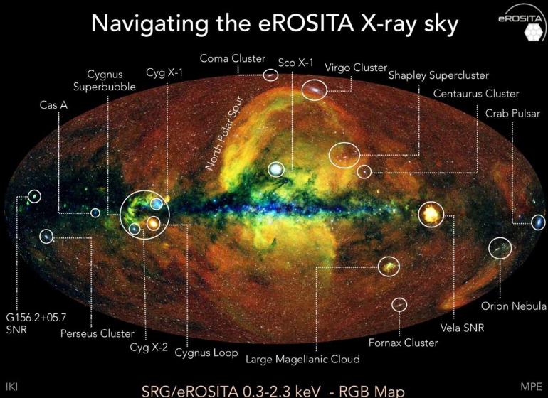 Arturo Villagomez / La Voz de Michoacán "La expansión de la civilización se puede comparar con el fuego; primero una pequeña chispa, luego una danzante llama, y luego una poderosa llamarada" Nikola Tesla. Berlín, Alemania. El telescopio ruso- alemán eRosita, instalado en el satélite Spektr-EG, fue lanzado en julio y tiene explorando desde diciembre pasado, esta vez captó la imagen más completa del universo hasta ahora conocida. La doctora en físicas Mar Gómez dio a conocer el resultado de una investigación del Instituto Max Planck, en el cual se detalla el proceso de captura, edición, y lo que revela del universo este proyecto. El mapa funciona con una proyección llamada Aitoff, la cual “desenvuelve” la esfera del cielo en una elipse, señala un hilo en su twitter: https://twitter.com/MarGomezH/status/1275047196182839299 La científica, también encargada del área de meteorología en El tiempo.ES, y National Geographic España, señaló que la imagen no era a colores, pero fue codificada para expresar diferentes energías: El azul revela rayos X de alta energía, el verde los de rango intermedio, y los rojos los de menos energía. El área que se muestra amarilla son los restos de una supernova. https://twitter.com/MarGomezH/status/1275047201794899970 Twitter ha funcionado como una herramienta de difusión para los científicos, pero también como una forma de cercanía a quienes estamos interesados, en esta plataforma, los profesionales han recibido información o preguntas de usuarios, permitiendo ampliar información o abriendo nuevas ramas de investigaciones. Hace 30 años, una imagen como esta fue obtenida, sólo que mucho menos completa y profunda, por el telescopio ROSAT, y, aunque hubieran tenido noción de cómo hacerla, no habría sido posible, debido a la tecnología de inicios de los años ´90. “Hasta ahora el equipo de operaciones ha recibido y procesado 165GB de datos, reunidos por las siete cámaras del eRosita” Señala el informe original El enlace para leer el informe completo en inglés se encuentra en el hilo de twitter publicado por Gómez.